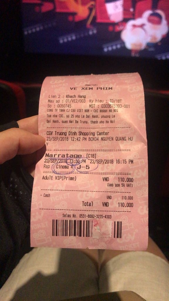 Truong dinhのCGVに行ったとき3分前じゃないと入場できないと言われました・・・。