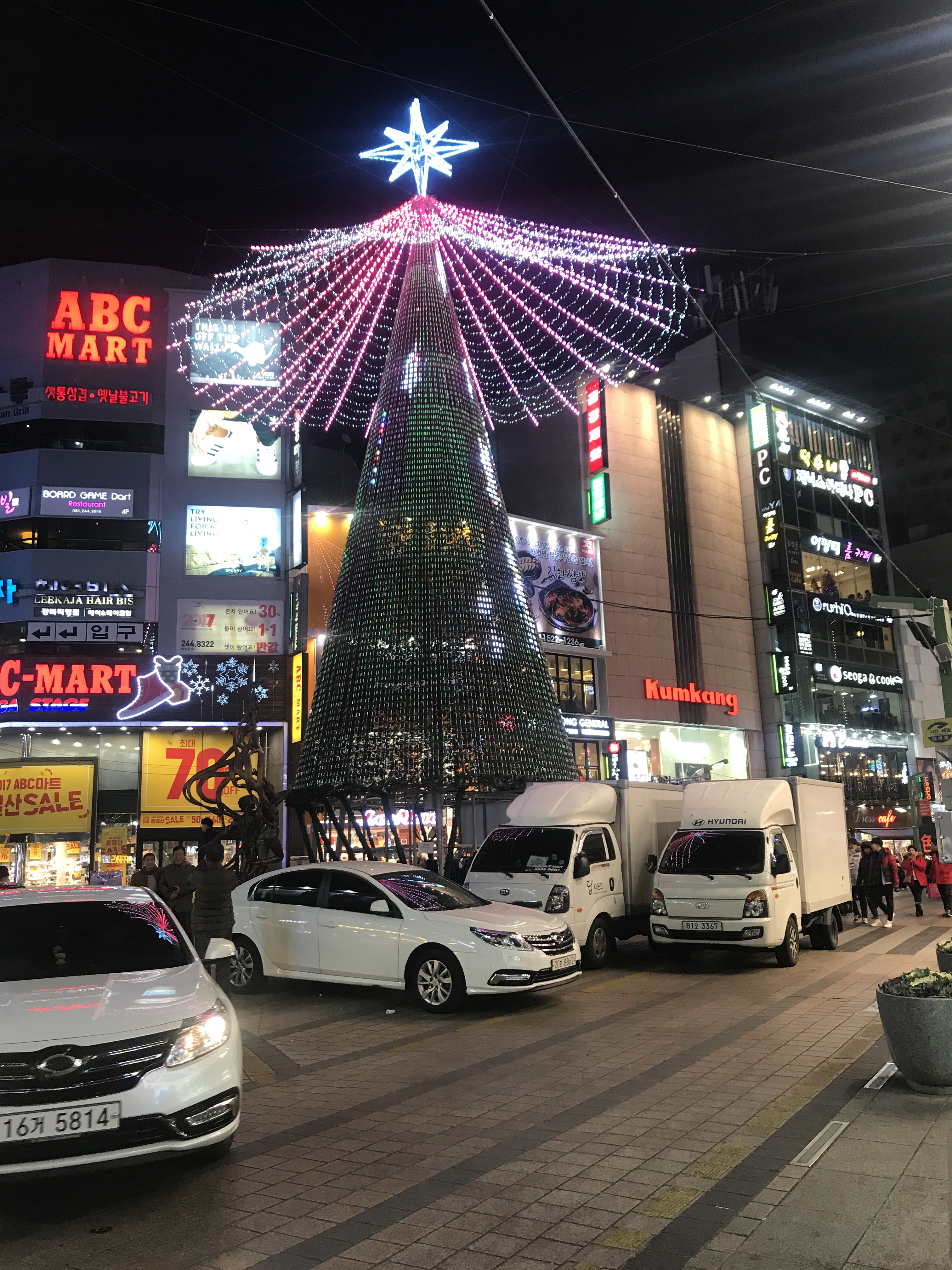 クリスマスの時期でここで釜山の有名なツリーになります!