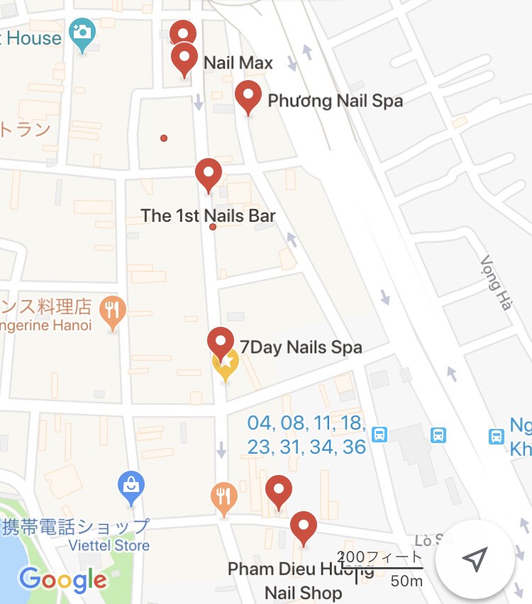 今回紹介するのはネイルサロンが密集しているホアンキエム右上のエリアです!