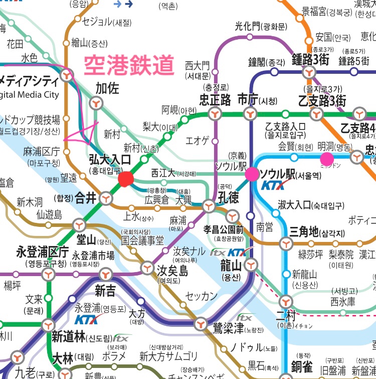韓国旅行もX回目となり弘大エリアには結構行ったのでこれから初めて弘大に行く方のために土地勘や位置間隔の早見地図を作ってみました。hongde