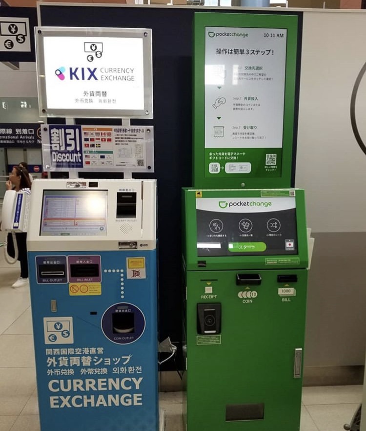 関西空港にはいくつか設置されており私は国際線到着フロアで両替してみました。
