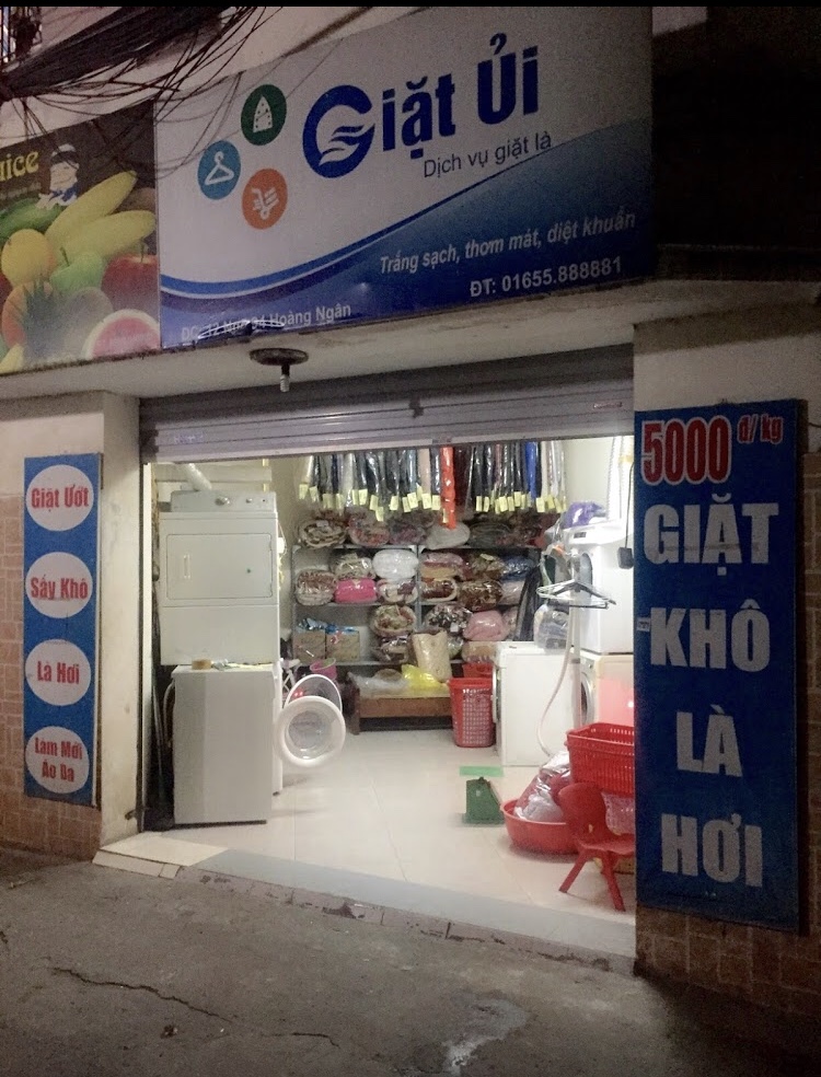 ベトナムの家は洗濯機がない家も多いのでいたるところにランドリーがたくさんあります!(だいたい水色系の看板)